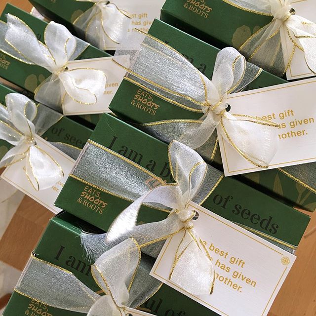 Custom gift prepping for a bulk order 🏼-We do customised / personalised gifts for corporate events, weddings, parties & just pretty much for any occassion you can think of You can choose from stickers, tags to even have a custom design printed onto the box (only available for Mini Seed Box) 🏼-DM us for more info on products and pricing, or drop us an email to shop@eatsshootsandroots.org#eatsshootsandroots #gift #present #custom #personalised #bulkorder #green #grow