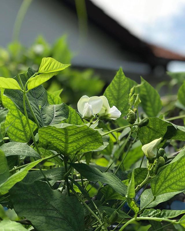 #gardenfacts The entire winged bean (kacang botol) plant is edible. The leaves, flowers, roots and bean pods can be eaten raw or cooked; the pods are edible even when raw and unripe. The flowers (seen here) can be used in salads! They are sometimes used to colour rice and pastry too. ..#eatsshootsandroots #sayurinthecity #growyourown #cookyourown #ediblegarden #gardenfacts #organic #veggies #greens #urbangarden #garden #farm #malaysia