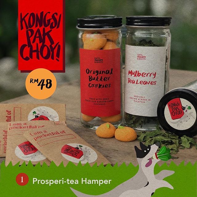 “Kongsi Pak Choy” from all of us at Eats, Shoots & Roots, along with our part-time guard dog, Spot! To kick off the Year Of The Dog, we’re launching THREE new CNY hampers which contains a wide selection of our growing products to make for a plentiful gift this festive season –– not to mention some new additions: ESR’s house-made CNY Cookies (you can choose from Original Butter Cookies or Kunyit Butter Cookies) & Mulberry Tea Leaves -PROSPERI-TEA HAMPER (RM48)5 Special Edition Seed Packs*1 ESR Jar of CNY Butter Cookies1 ESR Mulberry Tea Leaves-*You can choose your seed type from our list of available seeds-DM us for more info or visit our online shop @ http://shop.eatsshootsandroots.org #eatsshootsandroots #chinesenewyear #hamper #gift #garden #grow #veggies #plants #green #cny #cookies #tea