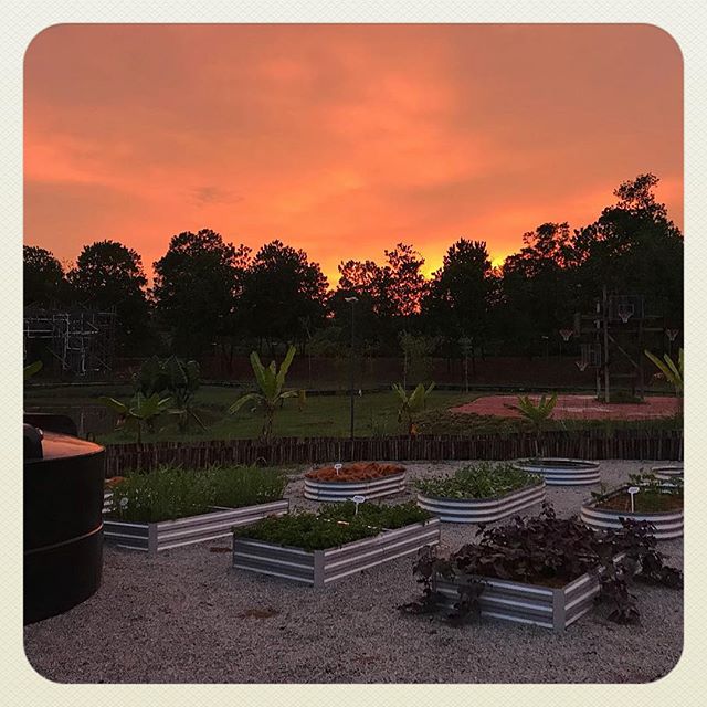Sunset over the new edible garden at @educitycommons. We will be running more workshops in Johor, watch this space!